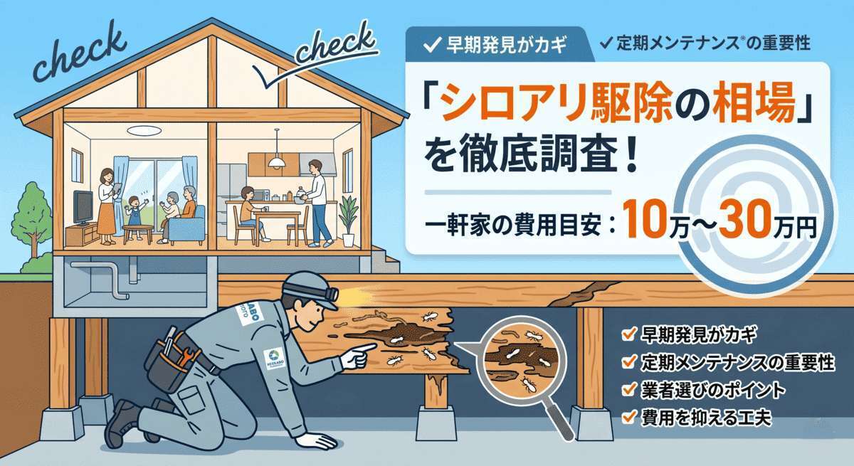 シロアリ駆除後も、定期的なメンテナンスを行うことで、再発を防ぐことができ、長期的にはコスト削減に繋がります。定期点検を行うことで、早期発見・早期対応が可能となり、結果的に大きな出費を避けることができます。
